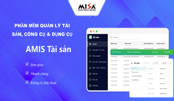 Phần mềm AMIS Tài sản tích hợp trực tiếp với phần mềm kế toán Công ty đang sử dụng, hoạt động trên nền tảng web – cho phép truy cập mọi lúc, mọi nơi - điều đặc biệt cần thiết trong thời đại linh hoạt quy trình làm việc. Quan trọng hơn, AMIS Tài sản cung cấp đầy đủ nghiệp vụ từ ghi tăng, điều chuyển, kiểm kê đến thanh lý tài sản, tất cả đều được xử lý trên một nền tảng đồng nhất và tự động hóa.